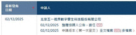 港交所官网显现,12月2日,北京五一视界数字孪生科技股份有限公司(以下简称五一视界)递交材料。