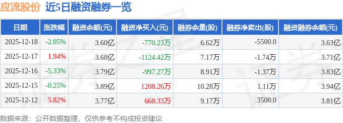 本站音书,逝世2025年12月18日收盘,应流股份(603308)报收于41.64元,下落2.05%,换手率1.53%,成交量10.36万手,成交额4.34亿元。