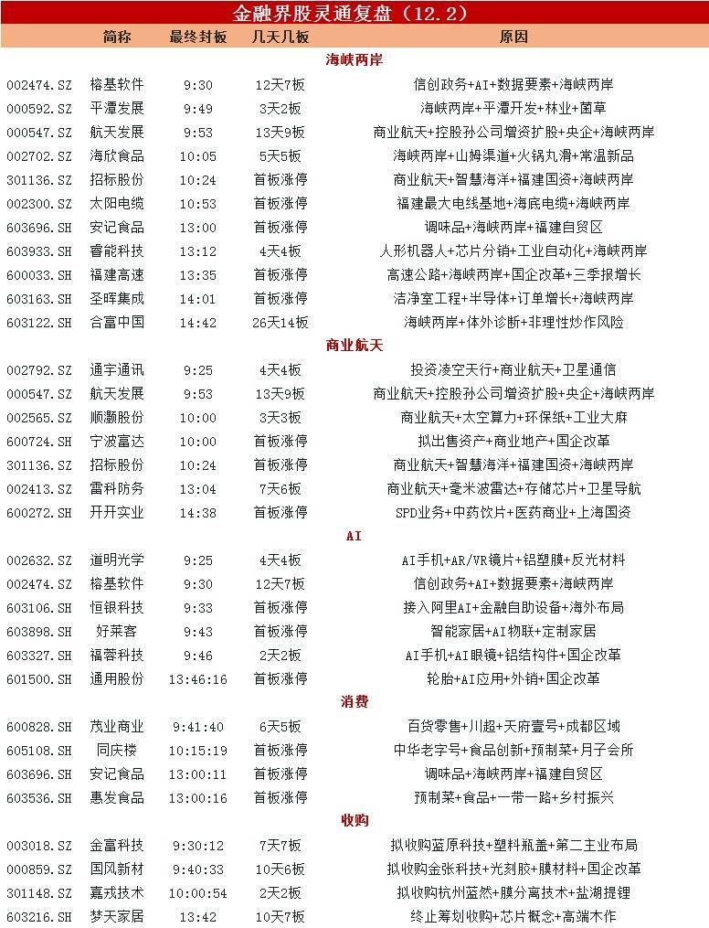 海峡两岸成见逆势爆发,海欣食物等涨停。花费股走强,同庆楼等涨停。交易航天成见弘扬活跃,航天发展等涨停。