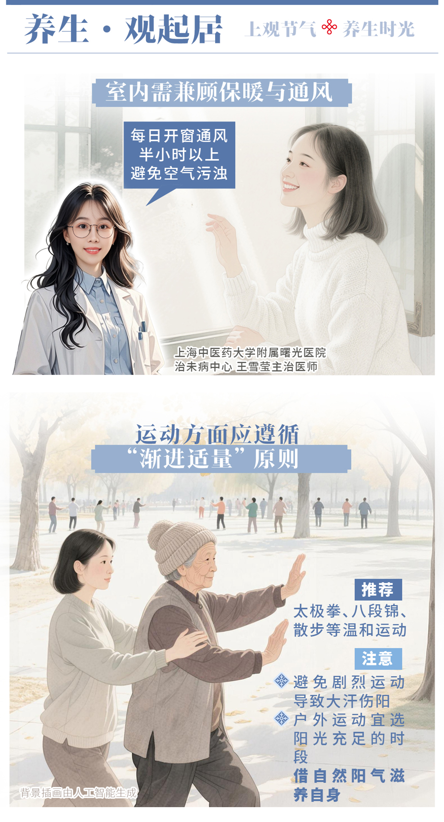 室内需兼顾御寒与透风,逐日开窗透风半小时以上,幸免空气污浊。运动方面应解任“渐进适量”原则,聘任太极拳、八段锦、散播等善良运动,幸免剧烈运动导致大汗伤阳。户外运动宜选阳光足够的时段,借当然阳气润泽本人。