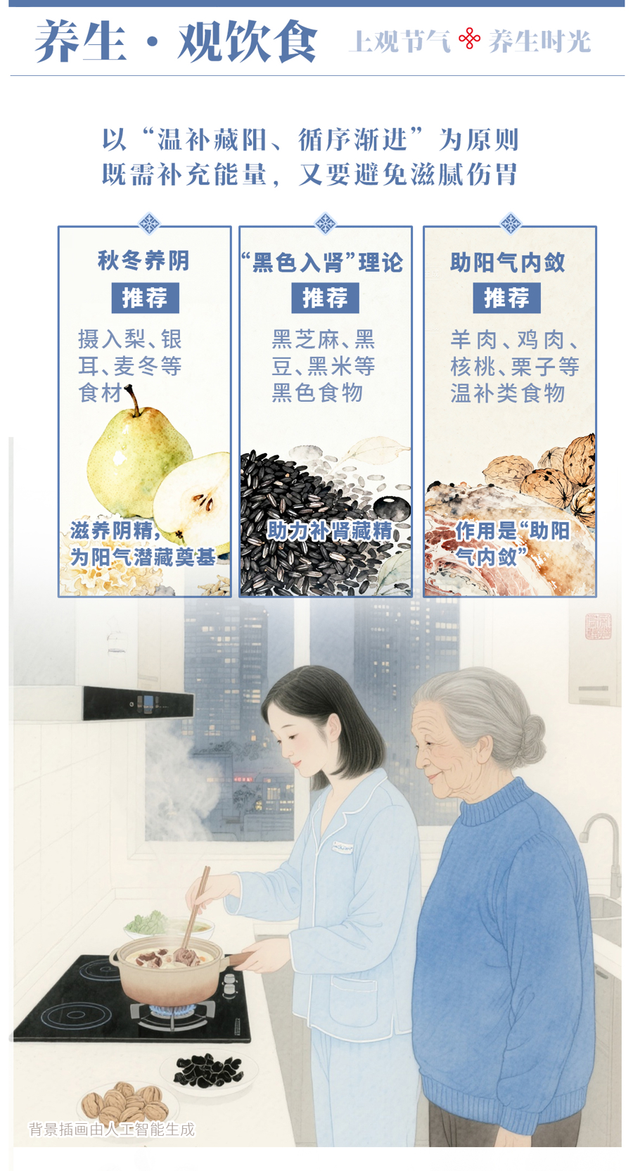 立冬饮食以“温补藏阳、规律渐进”为原则,既需补充能量,又要幸免滋腻伤胃。“秋冬养阴”是通过摄入梨、银耳、麦冬等食材润泽阴精,为阳气遮挡奠基;而羊肉、鸡肉、核桃、栗子等温补类食品,作用是“助阳气内敛”,同期解任“玄色入肾”表面,多吃黑芝麻、黑豆、黑米等玄色食品,助力补肾藏精。