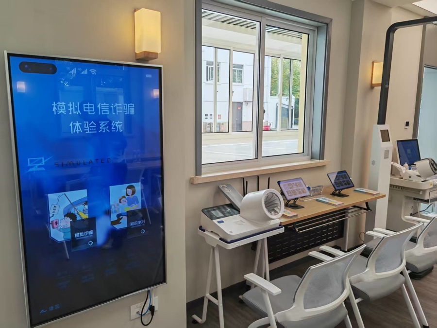 在走廊,电子全球阅读资源的瀑流屏里,有着丰富的电子竹帛,学员不错通过触摸阅读,也不错径直扫描二维码把电子竹帛带回家,还不错凭证需要提供主题性的阅读资源。机灵议事空间植入了机灵医疗、机灵家居、模拟讹诈等应用场景。防讹诈学习机,不错模拟多种电信讹诈经过,提示老年东说念主留心电信讹诈。一旁的平板电脑里干系于买菜、购物等多种数字化生存的操作学习场景。一个身高、体重BMI的测量台,与傍边机器一体化,通过这台机器不错快速、方便地测量东说念主的血压、骨密度等标的。这个场景里还配备了刻下常用的智能家居,哄骗“小爱”同学语音规模房间的灯光、窗帘、扫地机器东说念主。这里的信息手艺类课程,让老年东说念主千里浸式地体验、学习,掌抓机灵生存妙技。