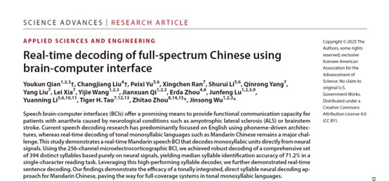 汉语,四肢群众使用东说念主口最多的声调语言,单音节、声调载义、同音异形字密集,一直是脑机接口畛域公认的“无东说念主区”。