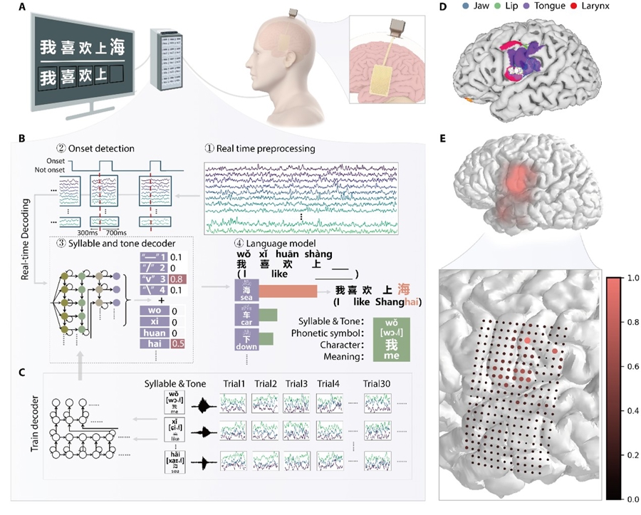 及时汉语解码脑机接口系统框架和电极孝顺度表征