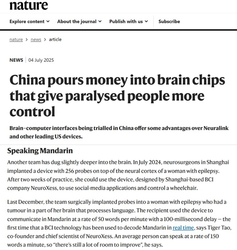 此前,Nature官网也对该效果进行了报说念。中国在汉语言脑机接口畛域,已踏进外洋最先行列。